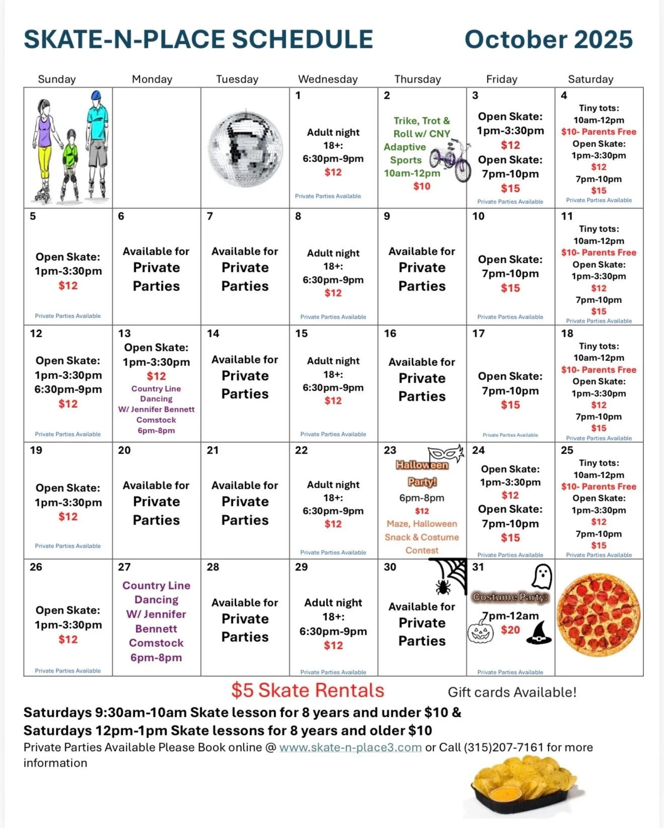 If you are not skating and/or you are there to watch your children, there is no fee. Leaving and returning to the building will incur a re-entry fee. See details for entry fee price below the calendar for the session you are attending. Details about all sessions are below calendar. Thanks for visiting Skate-N-Place!
