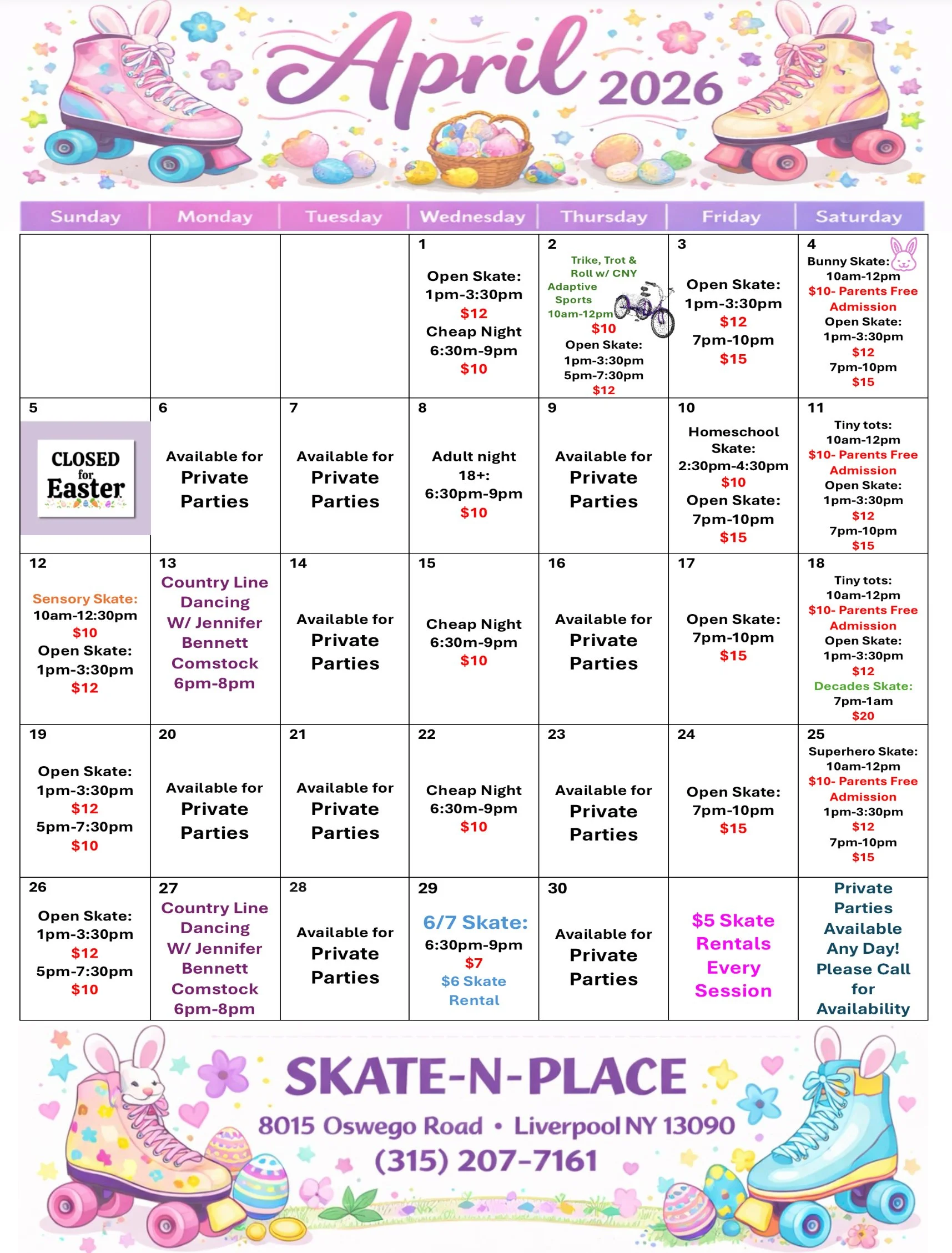 $5 Skate RentalsSunday 5:00PM-7:30PM $10